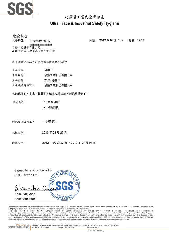 烏鋼刀材質測試認證